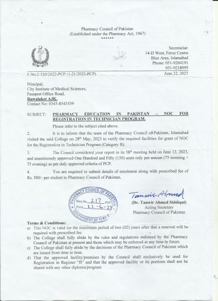 Punjab Medical Faculty 2 Years Course Equivalent to F.Sc